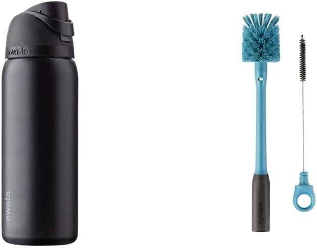 Owala FreeSip Insulated Stainless Steel Water Bottle with Straw for Sports and Travel, BPA-Free, 32-Ounce, Very, Very Dark & 2-in-1 Water Bottle and Straw Cleaning Brush, Smokey Blue